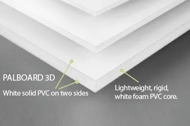 Palboard is an innovative material consisting of multiple layers that combine a durable PVC surface with a lightweight foam core. This material is easy to transport due to its lightness, yet it features a strong shell, capable of withstanding intense load.